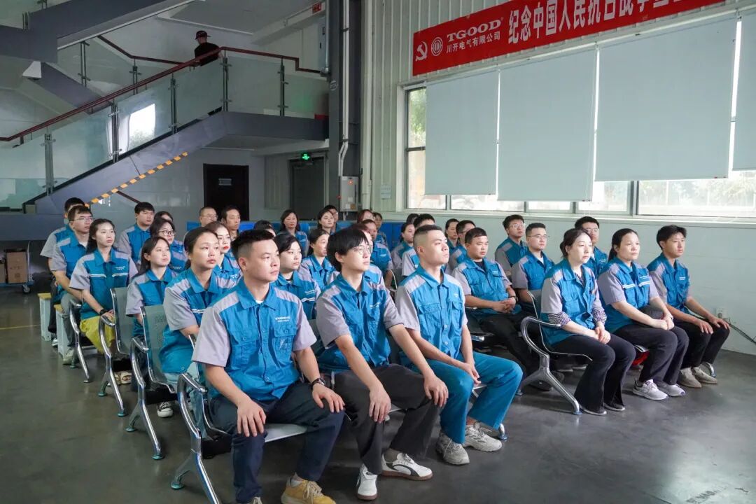 9月3日,中國人民抗日戰爭暨世界反法西斯戰爭勝利80周年閱兵儀式在北京隆重舉行。為深入貫徹落實愛國主義精神教育,弘揚偉大抗戰精神,增強民族凝聚力,中共川開電氣有限公司委員會組織公司全體黨員及入黨積極分子、高中層管理人員、九三學社四川省直工委川開電氣支社成員及廣大職工集中收看了閱兵儀式直播。