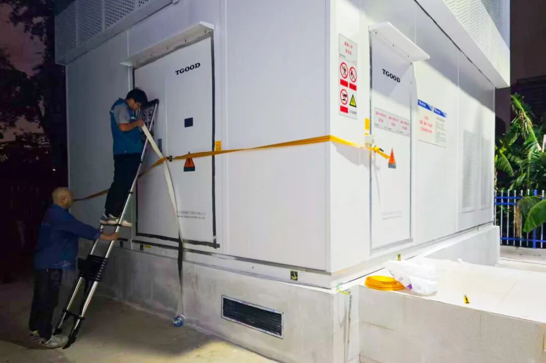 在臺風預警發布后,面對這一嚴峻挑戰,公司迅速啟動應急機制,特銳德川開電氣預制艙制造交付中心聯動售后部門,積極響應營銷部門,率先組建20余人共產黨員突擊隊奔赴廣東各電網項目及發電項目現場。在臺風登陸前,他們高效組織、爭分奪秒,為客戶電力設備筑牢一道道堅實的安全防線。