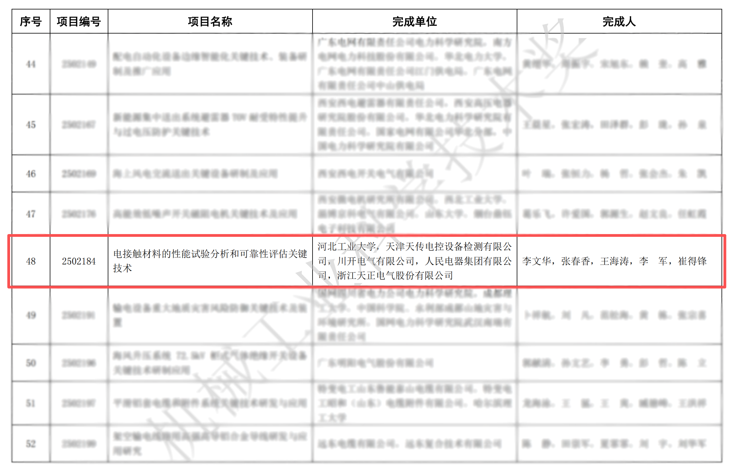 近日,2025年度“機械工業科學技術獎”獲獎名單正式揭曉,由特銳德川開電氣聯合河北工業大學、天津天傳電控設備檢測有限公司、人民電器集團有限公司以及浙江天正電氣股份有限公司共同完成的“電接觸材料的性能試驗分析和可靠性評估關鍵技術”項目,榮獲科技進步獎三等獎。