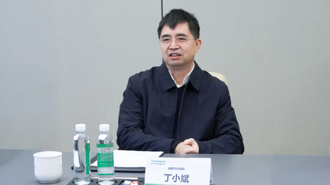 參觀后,成都市科技局黨組書記、局長丁小斌一行與特銳德川開電氣董事長李軍等公司領導面對面圍坐,高效溝通,直擊要點。