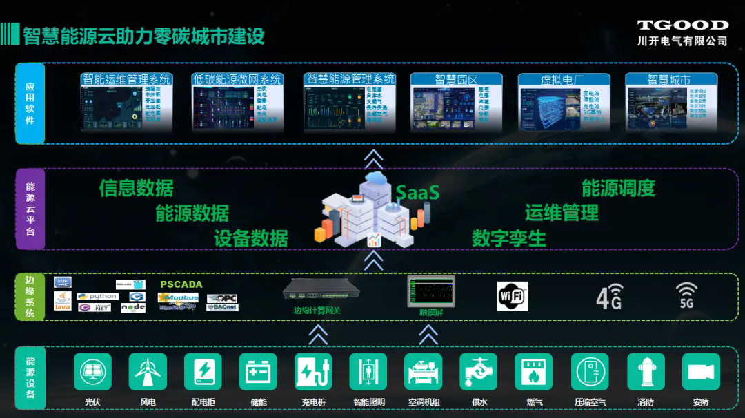 特銳德川開電氣特智匯低碳能源云深度融合“物聯(lián)網(wǎng)+”智能變配電、智慧運維、智慧能源技術(shù),架設(shè)了以應(yīng)用為引領(lǐng)的“云網(wǎng)邊端”五層架構(gòu)的軟件系統(tǒng),配套基于電氣源荷特性的200余種微型智能感知設(shè)備的智能配電設(shè)備的硬件系統(tǒng),部分技術(shù)達(dá)到國際先進(jìn)水平。特智匯低碳能源云已應(yīng)用新能源場站微電網(wǎng)、工業(yè)產(chǎn)業(yè)園微電網(wǎng)和電動汽車充放電網(wǎng)等生產(chǎn)生活場景,實施中用戶綜合能耗節(jié)約33.23%,標(biāo)準(zhǔn)煤減排631.14噸。