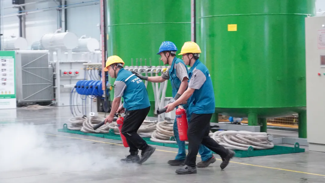 本次演練模擬公司油變產品線變壓器油泄漏引發火災事件,演練過程中,特銳德川開電氣油變產品線率先在部門內部進行泄露圍堵與滅火演練,部門負責人將事故上報公司應急指揮中心后,公司應急救援隊便趕往火災現場進行專項應急處置。