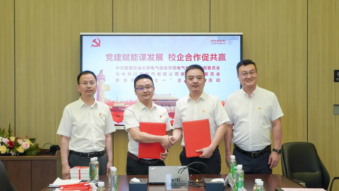 7月4日,中共西南石油大學電氣教工黨支部委員會與中共川開電氣有限公司第三支部委員會聯合開展“七一”主題黨日活動。西南石油大學電氣信息學院黨委書記、研究員李忠偉等西南石油大學電氣信息學院領導及師生,特銳德川開電氣黨委書記、副董事長邢志剛等公司領導及中共川開電氣有限公司第三支部委員會委員參加了本次活動。