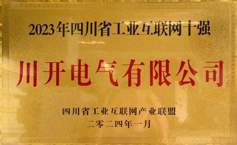 在2023年6月,川開電氣榮登2023年四川省工業(yè)互聯(lián)網(wǎng)“雙十強”。充分肯定了川開電氣在信息化建設(shè)、智能轉(zhuǎn)型、智能制造方面的創(chuàng)新實踐,充分展示了川開電氣在工業(yè)互聯(lián)網(wǎng)領(lǐng)域的示范引領(lǐng)地位。川開電氣緊跟四川省工業(yè)發(fā)展趨勢,為四川省工業(yè)經(jīng)濟增長以及綠色能源體系建設(shè)貢獻力量,以強勁的發(fā)展勢頭,賦能四川省制造業(yè)高質(zhì)量發(fā)展。