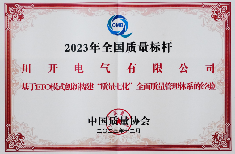 過去幾年川開電氣獲得的榮譽獎項有:國家級高新技術(shù)企業(yè)、國家火炬計劃項目企業(yè)、全國實施卓越績效模式先進企業(yè)、成渝地區(qū)智能制造和工業(yè)互聯(lián)網(wǎng)資源池企業(yè)、四川省制造業(yè)“貢嘎培優(yōu)”100戶企業(yè)、四川企業(yè)技術(shù)創(chuàng)新發(fā)展能力100強、四川省制造業(yè)企業(yè)100強、四川省先進企業(yè)、四川省名牌產(chǎn)品企業(yè)、四川省質(zhì)量穩(wěn)定標桿企業(yè)、四川省服務(wù)型制造業(yè)企業(yè)、四川省誠信示范企業(yè)、四川省卓越績效模式先進企業(yè)。示范產(chǎn)品:首個取得國家級核級中低壓成套鑒定設(shè)備、國家重點新產(chǎn)品認證、工信部智能制造試點示范項目、工信部智能光伏試點示范項目、四川省名優(yōu)產(chǎn)品、四川省工業(yè)互聯(lián)網(wǎng)示范項目。