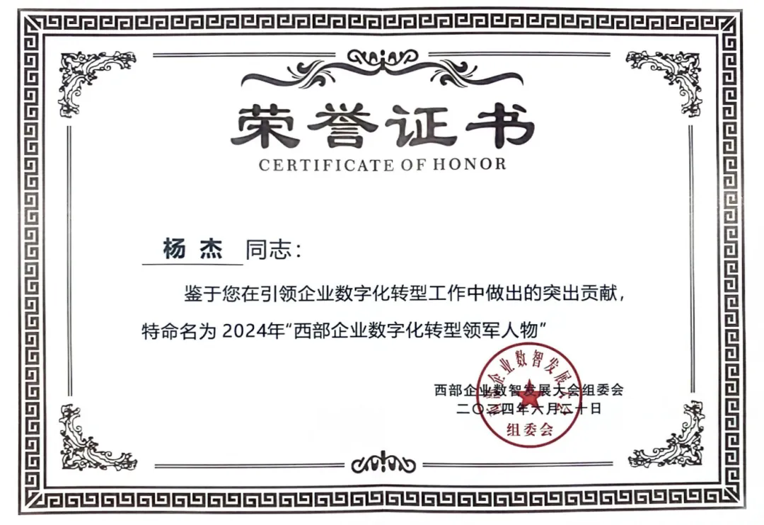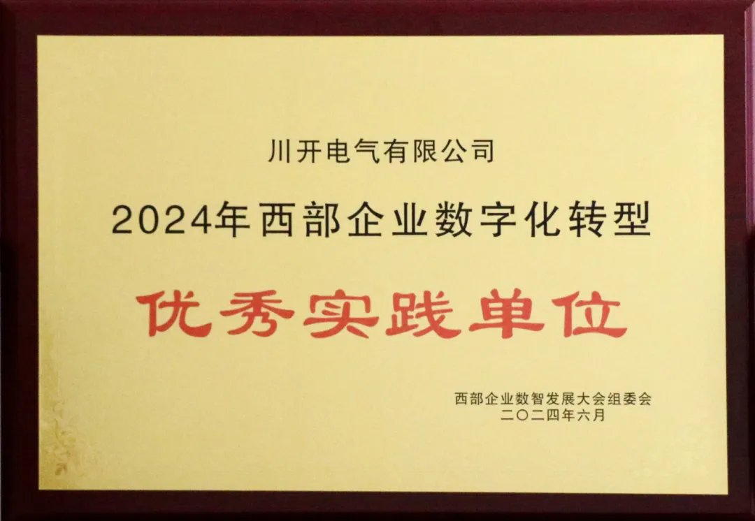 近日,特銳德川開電氣正式榮獲2024年西部企業數字化轉型優秀實踐單位授牌,公司總經理楊杰榮獲2024年西部企業數字化轉型領軍人物。