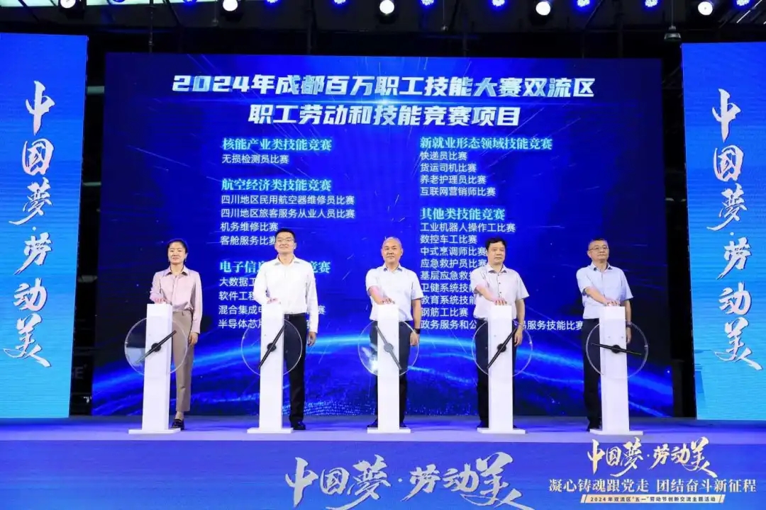 活動特別展示了2023、2024年雙流區工會系統榮譽,并集中發布了2024年成都百萬職工技能大賽雙流區職工勞動和技能競賽項目。最后以一首大合唱《我的未來不是夢》將氣氛推向高潮,現場無數勞動者同唱主旋律,共圓雙流夢。
