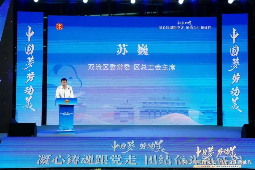 雙流區委常委、區總工會主席蘇巍發表致辭,并向全區各級勞動模范(先進工作者)、工匠人才和辛勤耕耘在全區各條戰線上的廣大職工朋友致以誠摯問候和崇高敬意。