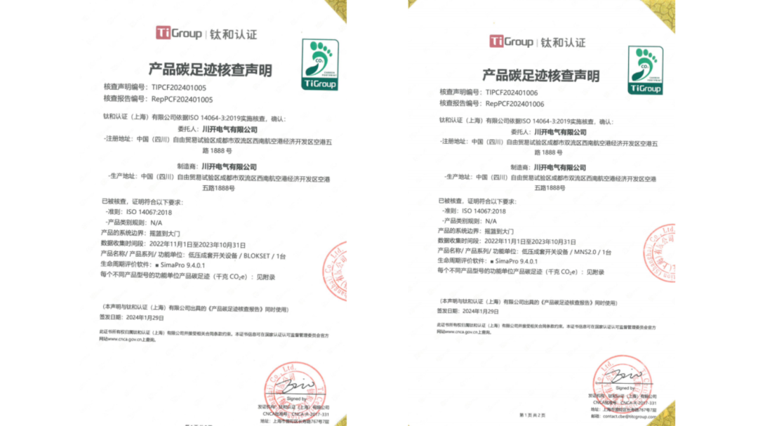 近日,特銳德川開電氣主營產(chǎn)品KYN28A-12、BLOKSET、MNS2.0、SIVCON 8PT經(jīng)過第三方權(quán)威機構(gòu)的審核和認證,成功取得了產(chǎn)品碳足跡證書。