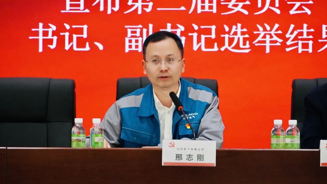 中共川開電氣有限公司第二屆委員會書記、特銳德川開電氣副董事長邢志剛作了表態發言,表示第二屆黨委將帶領全體黨員切實做好各項黨建工作,以黨建引領業務發展,積極開展黨員亮身份、結對子、與合作伙伴的黨建聯建等活動,建設具有特銳德川開電氣特色的生態黨建,提升全體黨員榮譽感,實現黨建工作邁上新臺階,助力公司高質量可持續發展。