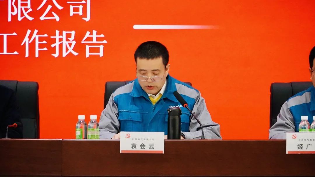 大會在全體到會人員奏唱中華人民共和國國歌中開幕。中共川開電氣有限公司第一屆委員會書記、特銳德川開電氣副董事長袁會云代表第一屆黨委作中共川開電氣有限公司第一屆委員會作工作報告,從要素配置、專項學習、創先爭優、干事工作、文化引領等方面全方位回顧了第一屆委員會工作,總結了過往工作的經驗與不足,提出今后工作的意見與建議,鼓勵全體黨員以實現企業永續發展、基業長青為己任,大力弘揚企業精神,迎接新挑戰,為建設卓越一流企業而努力奮斗。