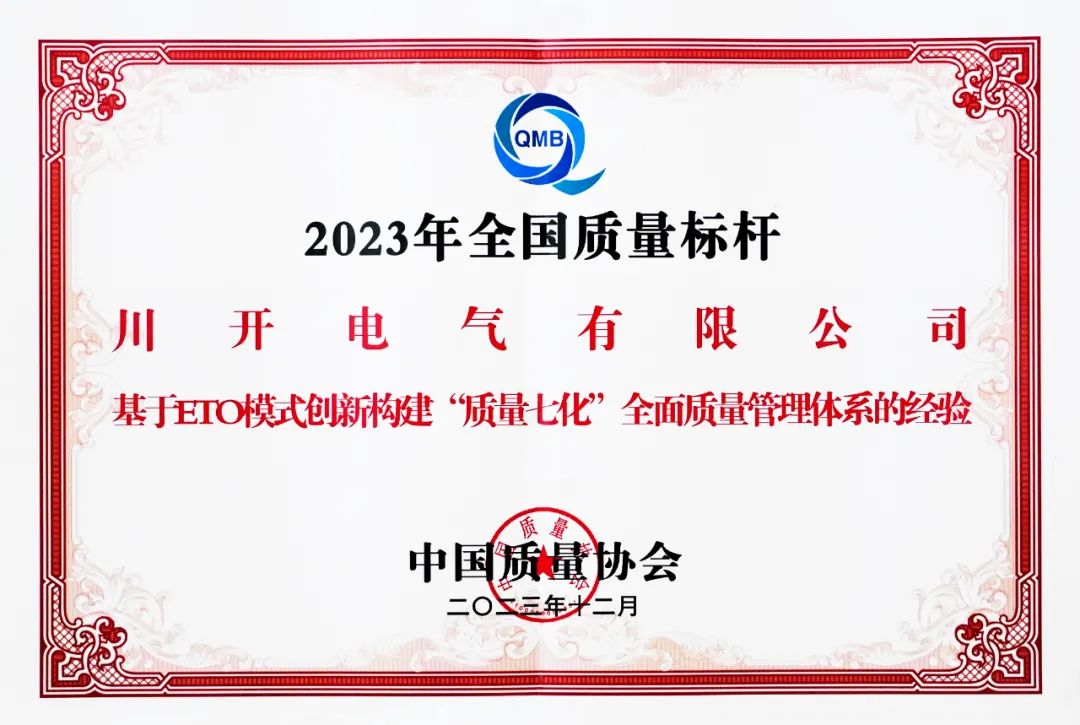 全國質量標桿是由工業和信息化部主導,中國質量協會組織評選的國家級榮譽,旨在強化提升企業質量管理水平,推動培育和建設產品卓越、品牌卓越、創新領先、治理現代、具有核心競爭力的一流企業,2023年主要聚焦質量管理體系升級、關鍵過程質量控制、產業鏈供應鏈韌性與安全和質量管理數字化進行遴選。特銳德川開電氣基于ETO模式創新構建“質量七化”全面質量管理體系的經驗入圍質量管理體系升級方向的典型經驗。