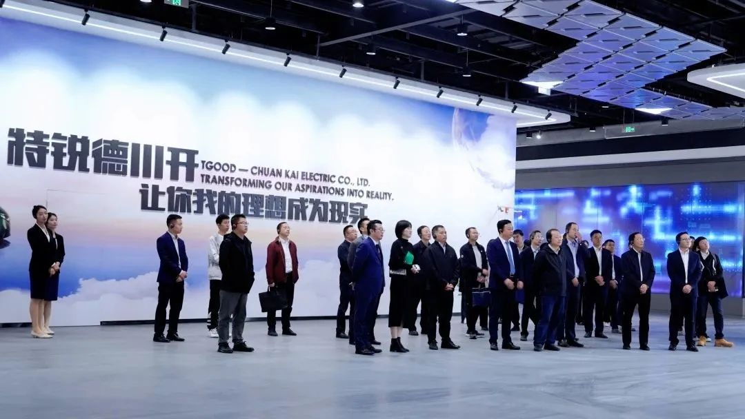 10月26日,四川省能源局局長梁武湖一行蒞臨特銳德川開電氣考察調(diào)研,四川省能源局副局長曾光,成都市經(jīng)信局、國網(wǎng)四川省電力公司、中國電力工程顧問集團(tuán)西南電力設(shè)計(jì)院有限公司、國網(wǎng)四川電動(dòng)汽車服務(wù)有限公司、成都城投能源投資管理集團(tuán)有限公司、成都特來電新能源有限公司相關(guān)調(diào)研領(lǐng)導(dǎo)與企業(yè)代表陪同調(diào)研。特銳德川開電氣董事長李軍、總經(jīng)理周君、副總經(jīng)理張愛寶熱情接待了來賓一行。