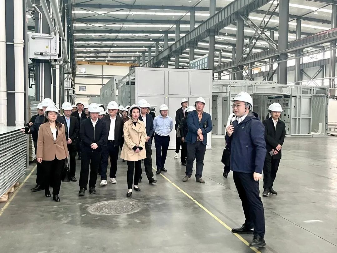 五市八地的工商聯負責人及企業家在副總經理張愛寶的陪同下,實地參觀了特銳德川開電氣智慧工廠,全方位了解了智慧能源管理系統,深入生產現場,觀摩了中低壓開關設備、預制艙模塊化變電站等核心產品,來賓們高度贊賞了特銳德川開電氣多年來在輸配電領域所取得的亮眼成績與綠色發展理念。