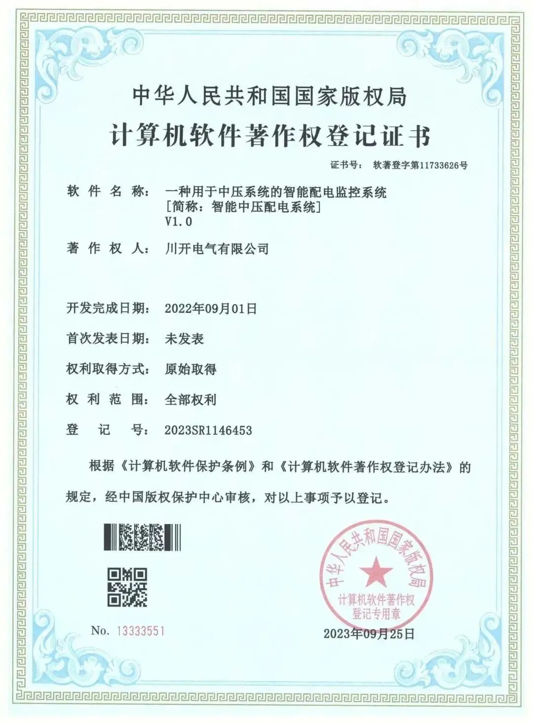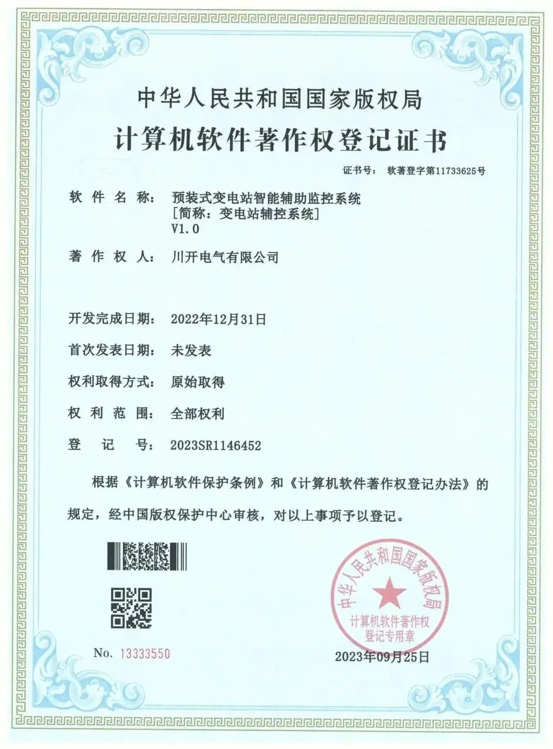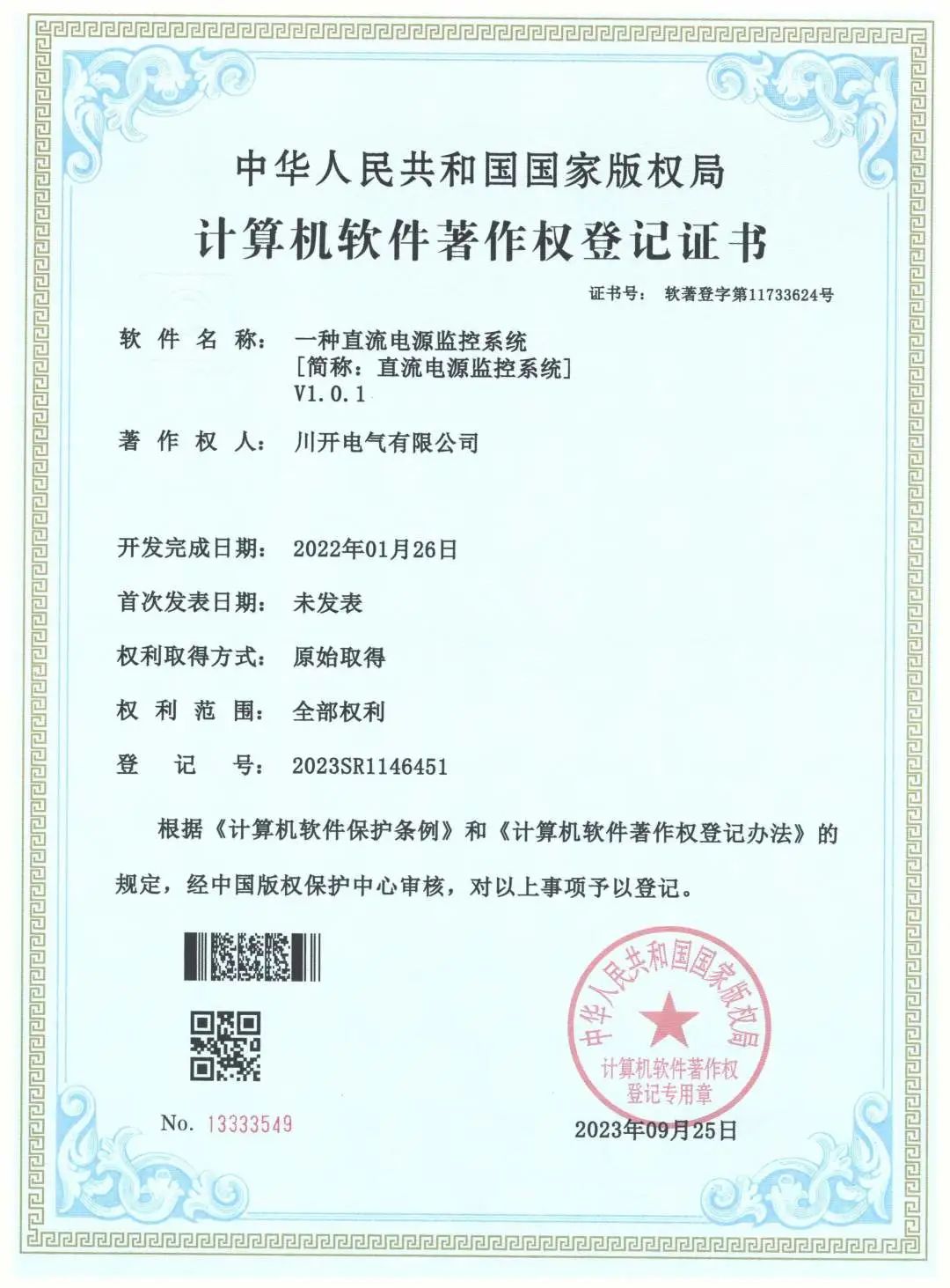 近日,特銳德川開電氣榮獲預(yù)裝式變電站智能輔助監(jiān)控系統(tǒng)、一種用于中壓系統(tǒng)的智能配電監(jiān)控系統(tǒng)、一種直流電源監(jiān)控系統(tǒng)三項(xiàng)計(jì)算機(jī)軟件著作權(quán)登記證書。