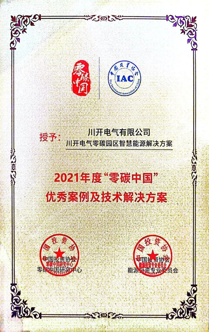 2022年7月30日,2022碳中和·零碳中國(guó)峰會(huì)暨第五屆中國(guó)能源投資國(guó)際論壇順利召開(kāi)。川開(kāi)電氣零碳園區(qū)智慧能源解決方案項(xiàng)目入選《2021“零碳中國(guó)”優(yōu)秀案例及技術(shù)解決方案》,為推進(jìn)零碳目標(biāo)和能源轉(zhuǎn)型提供典型示范。