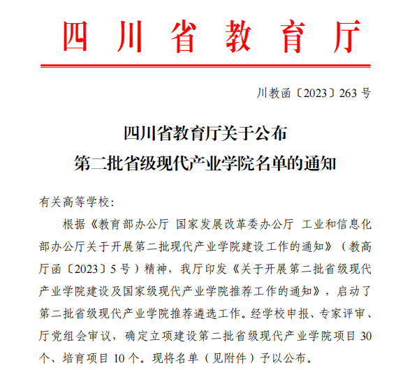 近日,特銳德川開電氣與成都紡織高等專科學校聯合申報的輸配電裝備制造產業學院項目入選四川省教育廳第二批省級現代產業學院培育項目名單。