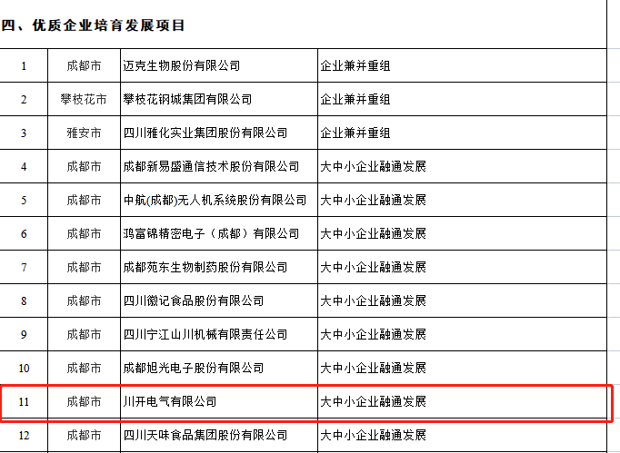 4月20日,四川省經(jīng)濟(jì)和信息化廳將2023年省級(jí)工業(yè)發(fā)展專(zhuān)項(xiàng)資金擬支持項(xiàng)目名單予以公示。其中,特銳德川開(kāi)電氣有限公司的優(yōu)質(zhì)企業(yè)大中小融通發(fā)展項(xiàng)目成功入圍。
