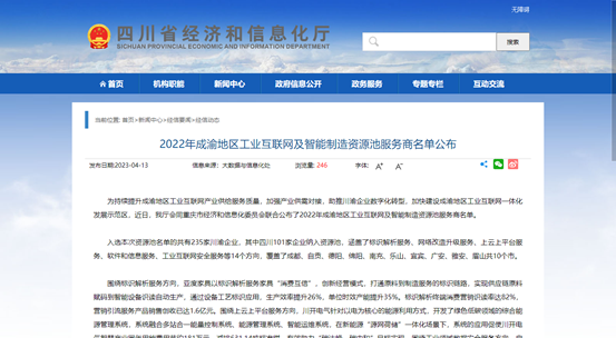 近日,四川省經濟和信息化廳發布2022年成渝地區工業互聯網及智能制造資源池服務商名單,特銳德川開電氣憑借綜合能源管理系統、低壓智能配電柜成功入選。
