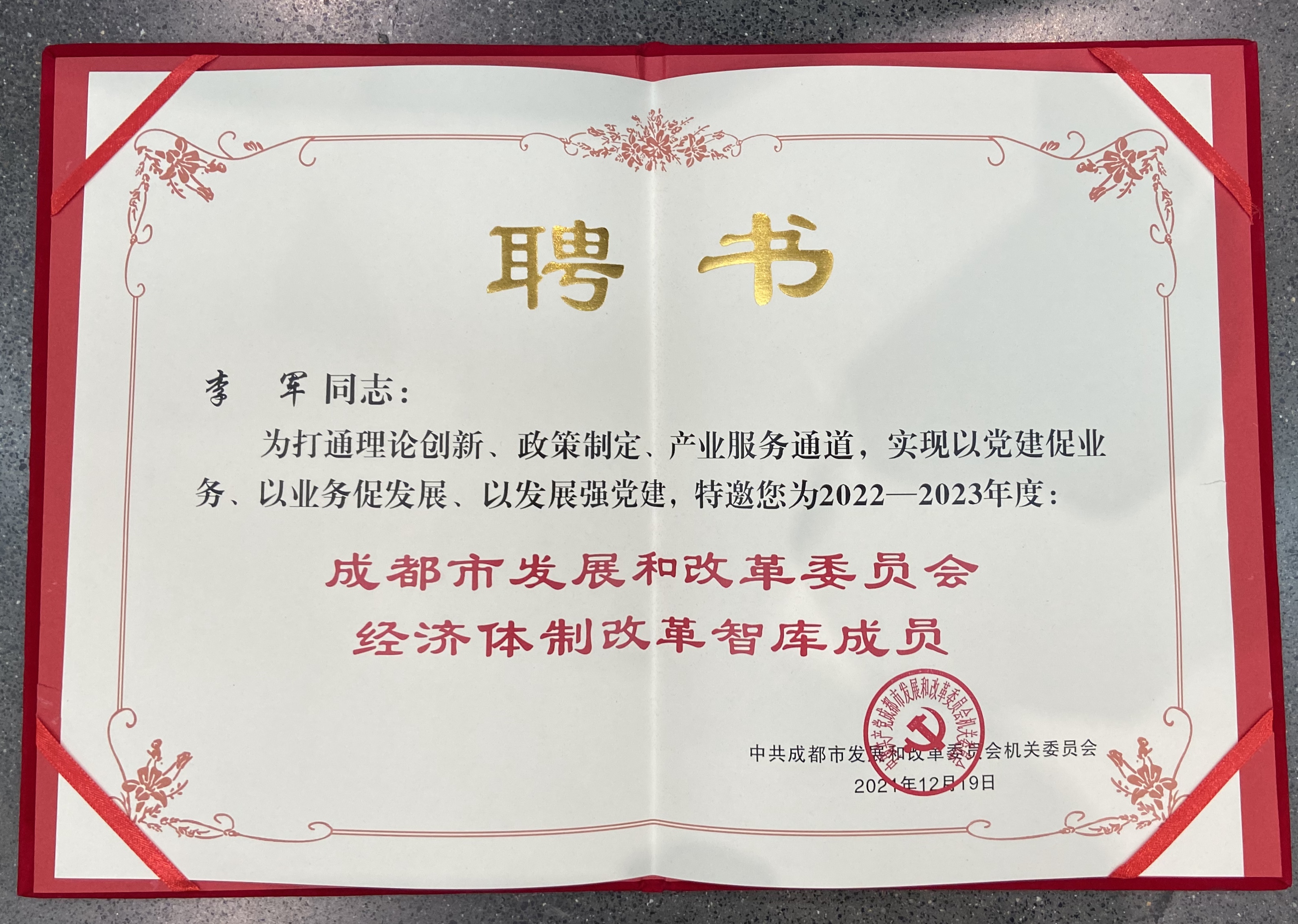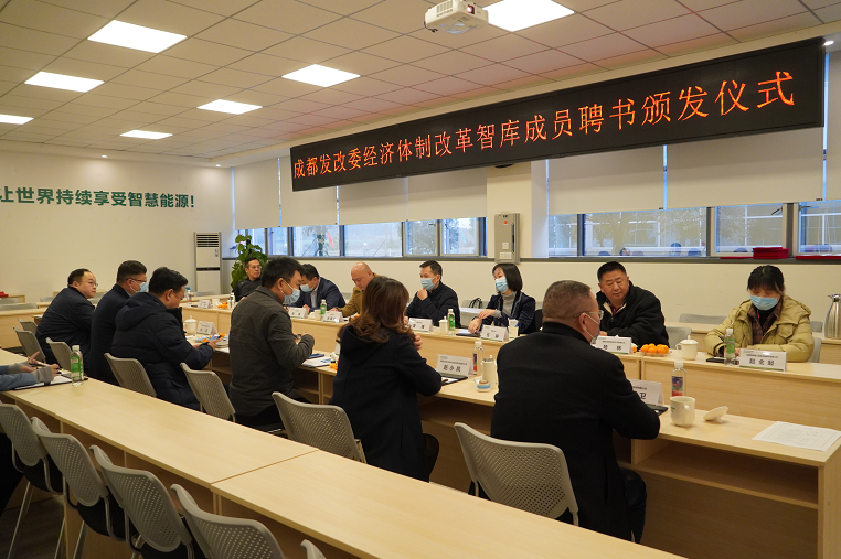? ? ? 此次會議,成都市發改委經濟體制改革處處長黃強為各受聘單位負責人頒發聘書。隨后智庫成員依次介紹了自身企業情況,大家相互學習、交流經驗,積極為成都市發改委制定經濟體制改革政策、開展政策評估等建言獻策。