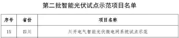 ? ? ? 近日,工信部、住建部等六個部門公布了第二批智能光伏試點示范名單,全國共18家企業、20個項目入選。川開電氣有限公司智能光伏微電網系統上榜示范項目。