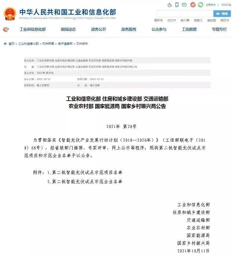 ? ? ? 根據工作通知,工信部等六部門開展智能光伏試點示范的主要內容是:支持培育一批智能光伏示范企業,包括能夠提供先進、成熟的智能光伏產品、服務、系統平臺或整體解決方案的企業;支持建設一批智能光伏示范項目,包括應用智能光伏產品,融合大數據、互聯網和人工智能,為用戶提供智能光伏服務的項目。