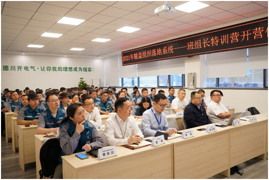 為了推動企業(yè)班組建設,提高基層管理人員綜合技能,促進現(xiàn)場精益化管理,川開電氣有限公司聯(lián)合成都敏道企業(yè)管理咨詢有限公司共同開展了精益班組培訓項目,并于2021年5月7日早上8:30在B8會議室舉辦了班組長特訓營開營儀式。成都敏道企業(yè)管理咨詢有限公司創(chuàng)始人、精益組織落地系統(tǒng)總教練王明老師,駐廠教練李松和曾永川老師,班主任李洋老師,以及公司總經(jīng)理邢志剛、常務副總經(jīng)理楊杰、副總經(jīng)理楊莉、副總經(jīng)理賈倫、人力資源部經(jīng)理裴曉霜、供應鏈管理部經(jīng)理逯雨港、低壓運營部經(jīng)理吳明永、中壓運營部經(jīng)理韋斌、金加工運營部經(jīng)理張鴻、三箱事業(yè)部經(jīng)理張彬、箱變事業(yè)部電氣主管王浩宇和學員共95人參會。