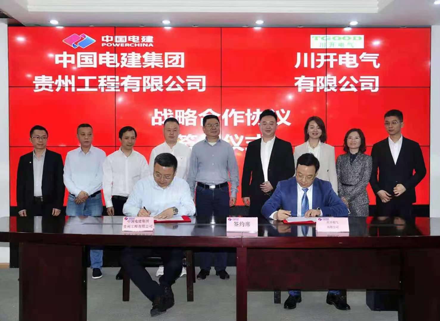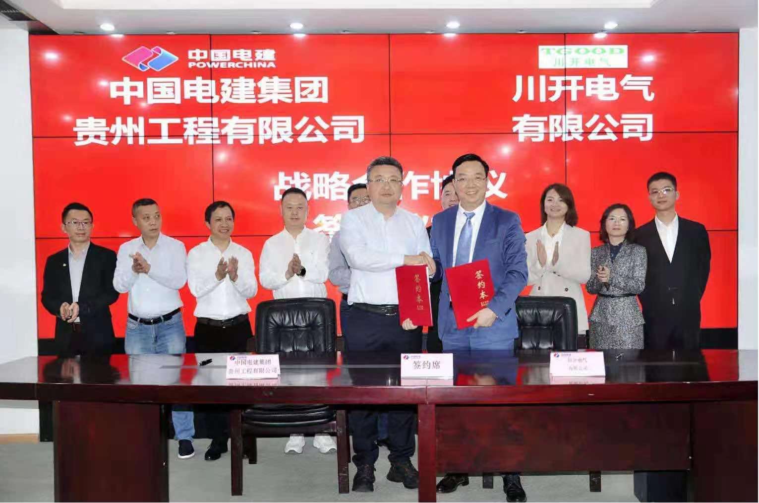 4月24日,川開電氣有限公司(以下簡稱我司)與中國電建貴州工程公司(以下簡稱貴州工程公司)戰略合作協議簽約儀式在貴陽貴州工程公司舉行。雙方本著“誠信合作、優勢互補、互利共贏、共同發展”的基本原則,達成戰略合作伙伴關系。公司董事長李軍,貴州工程公司黨委書記郭瑋,副總經理余豪出席簽約儀式。