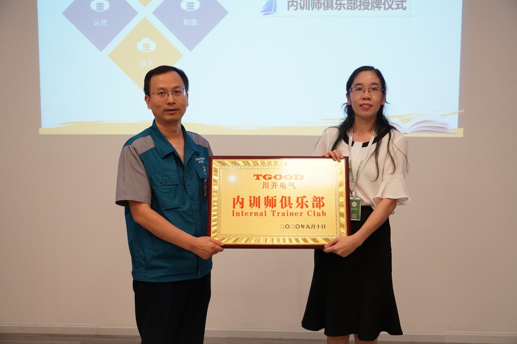 接下來,激動(dòng)人心、盼望已久的內(nèi)訓(xùn)師俱樂部即將啟航。由公司代表總經(jīng)理邢志剛,向內(nèi)訓(xùn)師俱樂部代表人力資源部經(jīng)理裴曉霜,授予川開電氣內(nèi)訓(xùn)師俱樂部成立牌匾。這一刻,宣告川開電氣內(nèi)訓(xùn)師俱樂部正式成立啦!