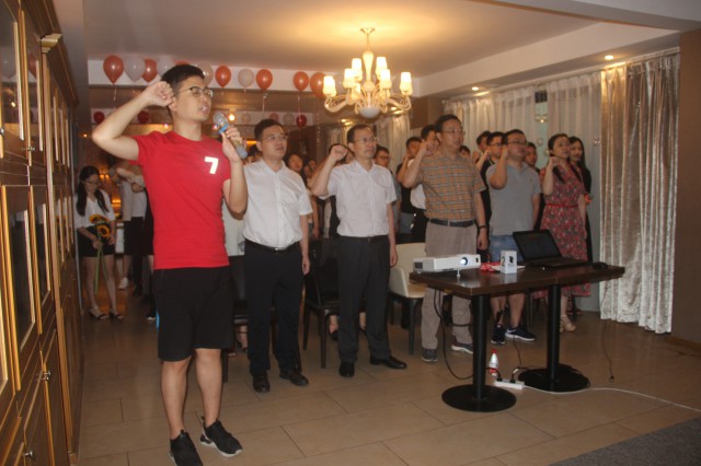 為贏得公司三次創業,在得力干將、業務拓展部經理黃愷的領誓下,全體奮斗者進行了鄭重宣誓: