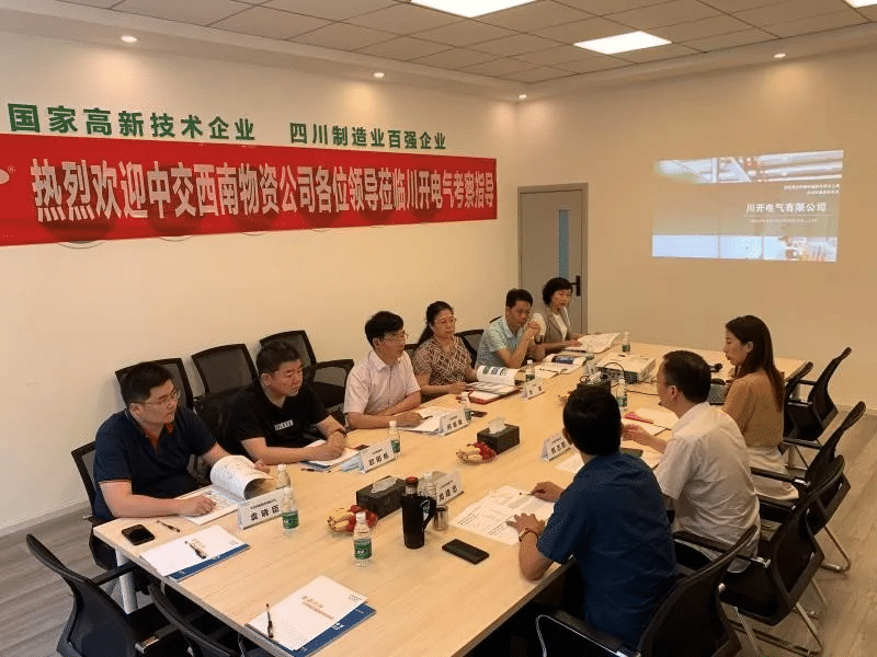 ? ? ? ?2020年5月15日下午,中交西南物資有限公司(以下簡稱“中交西南物資公司”)總經理閔渝森、副總經理歐陽帆、財務經理兼綜合部經理袁曉臣,成都市名優產品供需企業聯盟常務副秘書長張麗、秘書長助理李朝軍一行蒞臨川開電氣有限公司(以下簡稱“川開電氣”)座談交流、洽談合作。川開電氣總經理邢志剛、營銷總監周建忠、市場部主管徐錦、川渝區銷售經理賈敏出席了本次交流會議。