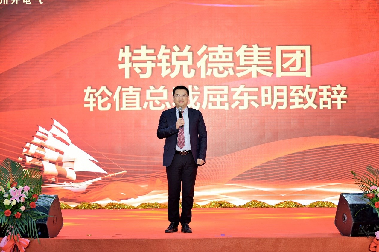 特銳德集團輪值總裁屈東明也代表集團公司董事長于德翔先生及管理層向大家致以了新年的祝福。首先他對全體川開電氣戰友們的辛勤付出表示了肯定,對大家在2019年創造的業績給予褒獎,也希望在接下來的每一天我們都能蒸蒸日上,奮力拼搏,砥礪前行。