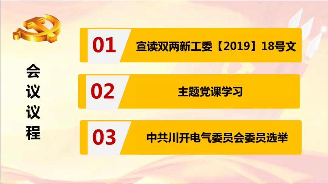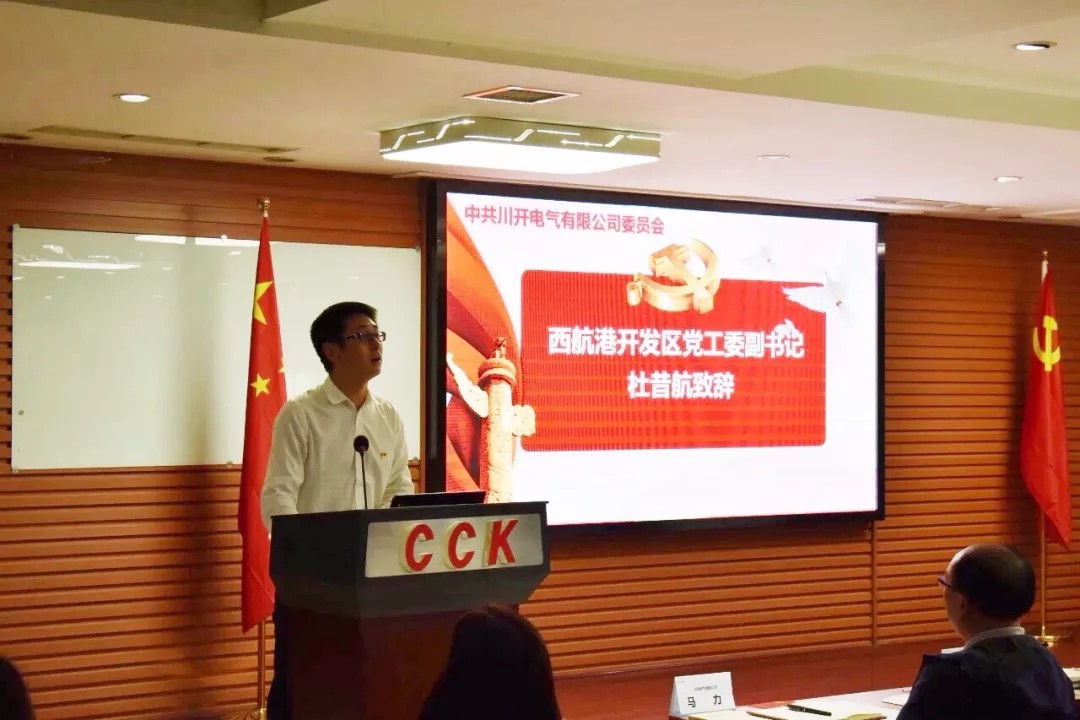 西航港開發(fā)區(qū)黨工委副書記杜昔航發(fā)表致辭,表示在新中國70華誕來臨之際,中共川開電氣有限公司委員會召開黨員大會,開展主題教育并選舉產(chǎn)生第一屆黨委委員,意義重大。同時指出作為傳統(tǒng)制造業(yè),川開電氣從成立至今,逐步發(fā)展壯大,既是雙流區(qū)本土存量優(yōu)質(zhì)企業(yè),即將建成投產(chǎn)的智能制造工業(yè)園也是雙流區(qū)重點項目。過去,川開電氣立足實體經(jīng)濟,專注電氣設備制造及服務,助推行業(yè)發(fā)展,為雙流區(qū)經(jīng)濟發(fā)展做出了應有的貢獻,希望新的工業(yè)園建成投產(chǎn)后能創(chuàng)造更高的價值。最后,對即將產(chǎn)生的第一屆黨委班子提出殷切期望:希望成員精誠團結,發(fā)揮領導核心作用,踐行責任,加強學習,提升理論素養(yǎng)和政治水平,務實奮進,全體黨員更應堅守初心,砥礪作為,打造高質(zhì)量優(yōu)秀企業(yè)。