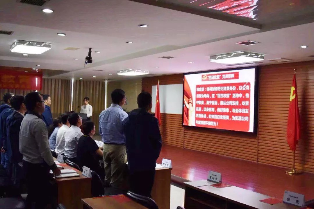 川開電氣副董事長袁會云帶領所有黨員重溫入黨誓詞,副總經(jīng)理邢志剛帶領參會人員進行“百日攻堅”黨員誓師。