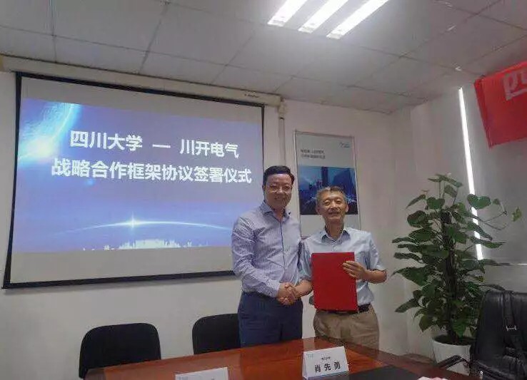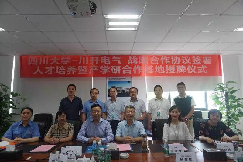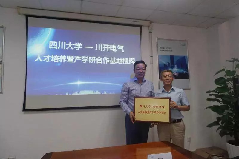 為貫徹四川省和成都市與四川大學聯合共建一流大學的戰略部署,助推四川大學雙一流建設,促進產學研深度合作,川開電氣有限公司與四川大學的戰略合作框架協議簽署儀式及人才培養暨產學研合作基地授牌儀式于2019年7月10日在川開電氣有限公司二號會議室舉行。四川大學電氣工程學院院長肖先勇先生及川開電氣有限公司董事長李軍先生等領導出席簽約暨授牌儀式。