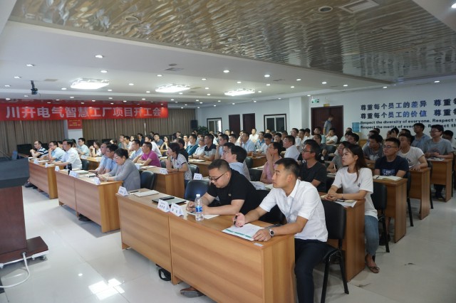 會議第一項,由川開電氣副總經理邢志剛對項目團隊進行現場任命。邢總指出智慧工廠項目時間緊、任務重,如何保證項目的順利進行需要我們大家共同努力,這將是一場沒有硝煙的戰爭,原有經驗可能會是我們前進的絆腳石,我們必須跳出原有思維模式,接受新的管理模式和生產模式,才會不斷提升和重塑自我,進而推進川開電氣的不斷進步。
