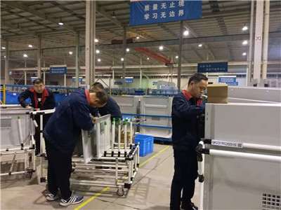 傍晚時分的川開電氣生產車間燈火通明,人來人往,每條生產產線,都有條不紊的進行著各項工作。KYN 28產線處出現了一群可愛的身影。“開始點名啦!楊莉、張現峰、李俊宏、呂松梅、劉世龍、何建勇……”,一個個人名響起,一聲聲應答干脆利落。細看一番,有行政中心、信息部、工業工程部、生產調度部等各職能部門的戰友,本該下班或在辦公室工作的這群戰友們,在每天下午下班后的這個時間點準時出現在了車間一線的現場。