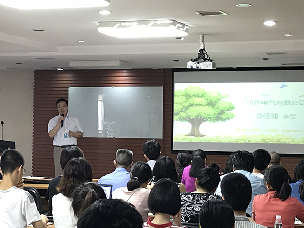 首先,川開電氣有限公司總經理李軍祝賀孩子們以優良的成績進入大學的行列。同時指出此次活動旨在于讓孩子們走進川開電氣,讓孩子們體會父母親在公司里的付出,體會怎樣用辛勤勞動創造價值、創造人生的輝煌!軍總對于即將進入大學生活的孩子們提出幾點要求:
