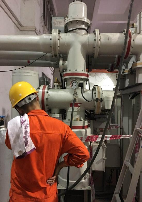 7月16日起,川開電氣全資子公司——特銳德西明電力有限公司啟動了重鋼110kV GIS 組合開關5個氣室微水超標和2個氣室漏氣的維保項目,此次項目包括戶外氣室及戶內(nèi)氣室。GIS的廠家較多,設備多樣性,且現(xiàn)場沒有任何降溫措施,給維保工作帶來了一定困難。但參與項目的全體戰(zhàn)友們不懼高溫,迎難而上,在50多度高溫的炎炎烈日下連續(xù)奮戰(zhàn)。