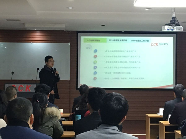 憶往昔崢嶸歲月,川開電氣副董事長袁會云在會議開始后,首先與大家共同回顧了2017年公司各項目標(biāo)指標(biāo)完成情況。在2017年度中我們在信息化建設(shè)、與集團(tuán)的交流融合以及合同履約管理、精益生產(chǎn)推廣、員工培訓(xùn)提升等方面取得一定成績。但工作中仍然存在不足,比如創(chuàng)新意識還不夠,產(chǎn)品、研發(fā)、生產(chǎn)、市場、管理等工作缺乏前瞻性,比較默守陳規(guī);目標(biāo)分解和引導(dǎo)不足;成本意識還需要提高及SAP上線還需要加強(qiáng)培訓(xùn)等方面。