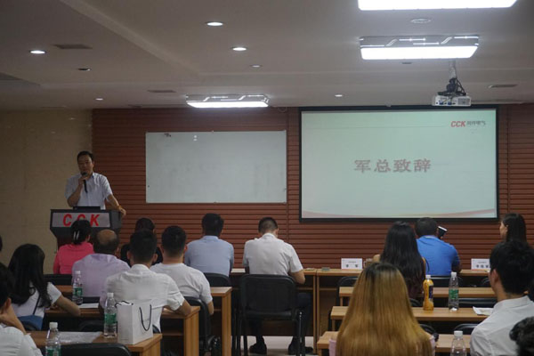公司總經理李軍率先發表講話。軍總對HIC班畢業學員表示祝賀。隨后,結合自己的銷售經歷,軍總談到了銷售工作給他生活和人生帶來的影響,并結合自己早期在川開的工作經歷,希望HIC全體學員能以學習沉淀的心態,站在公司發展的高度思考問題。
