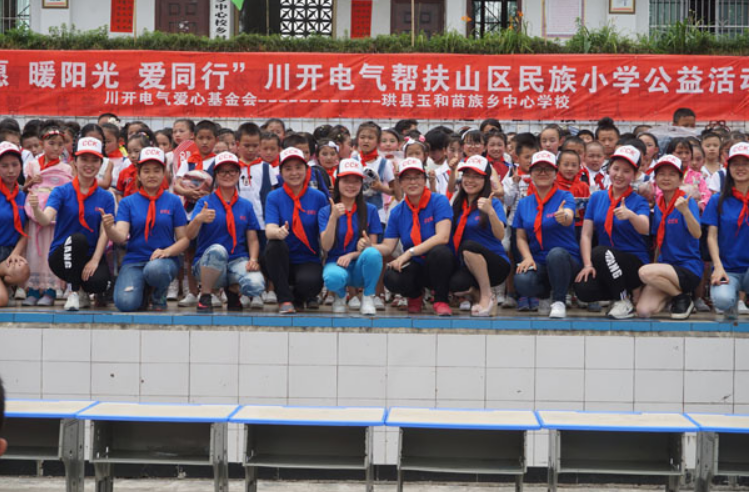 可愛的苗鄉小朋友們更是用《苗家迎客歌》質樸的表達對志愿者們的歡迎,將一切感謝之語匯成歌聲。玉和苗族鄉中心學校的羅校長對志愿者們的到來表達了熱烈的歡迎并對全體川開人的愛心致以衷心的感謝。川開電氣副總經理楊莉也代表全體川開人表達了對孩子們的美好祝愿和對老師的崇高敬意,以及表達了川開電氣將建立長效的捐資助學機制,將愛心進行到底的決心。