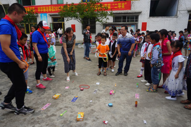 捐贈儀式結束后,川開電氣的志愿者們在學校籃球場舉辦了精彩的愛心游園活動。活動通過“幸運你來轉”、“愛心套圈圈”、“夾彈珠”、“夾球前進”、“吹乒乓球”等互動游戲,向參加活動的苗族鄉學校的小朋友們派發活動小獎品,給他們帶去歡聲笑語,共享“童”心“童”趣。