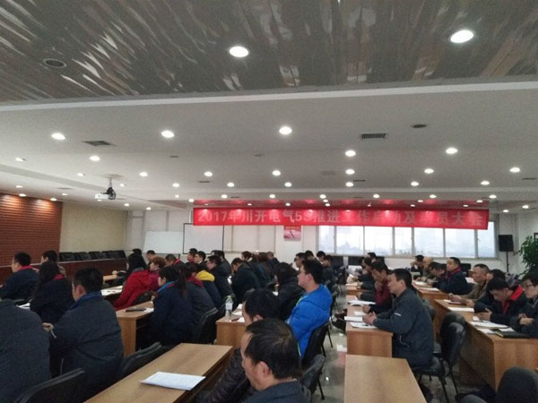 根據公司年度精益生產工作計劃和安排,2017年2月13日下午5:40, “5S推行工作啟動及動員大會”及“工業工程與精益生產概論培訓”在六樓會議室召開。金加工事業部和中低壓事業部所屬管理人員、班組長及骨干員工共計70人參加了本次會議。大會旨在使各部門及各位戰斗在一線的戰友們在殘酷的市場競爭環境下,如何做到提升效率,降低成本,提高產品質量,縮短交貨期,滿足客戶需求,以做好市場的強力支撐。