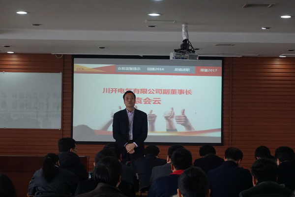 2017年1月7日上午8時,川開電氣有限公司2016年度年終總結暨述職大會在六樓會議室召開。本次述職大會旨在對各部門2016年工作進行全面盤點及反思,并對2017年的工作進行更好的安排部署,同時也為各部門管理人員提供一個展示自己、互相學習的平臺。