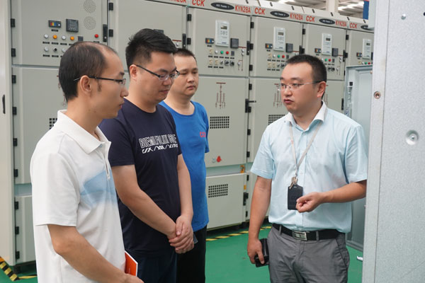 隨后在總經(jīng)理助理?xiàng)罱艿呐阃瑤ьI(lǐng)下,考察團(tuán)隊(duì)一行來(lái)到我公司生產(chǎn)現(xiàn)場(chǎng)參觀。當(dāng)看到一排排精致的開(kāi)關(guān)柜整齊的呈現(xiàn)在眼前,各工序操作人員有條不紊、配合默契的工作,大家紛紛豎起了大拇指。總經(jīng)理助理?xiàng)罱軐?duì)我公司產(chǎn)品特性及優(yōu)勢(shì)做了詳細(xì)介紹,李總一行充分肯定了我公司近年來(lái)在輸配電成套設(shè)備研發(fā)、制作、制造、銷(xiāo)售、安裝、技術(shù)咨詢(xún)等方面取得的成績(jī),并對(duì)我公司自主研發(fā)的新產(chǎn)品“110kV城市中心模塊化智能箱式變電站”給予了高度贊賞。同時(shí)就今后雙方友好合作,推進(jìn)雙方企業(yè)更好更快的發(fā)展進(jìn)行了深入探討。