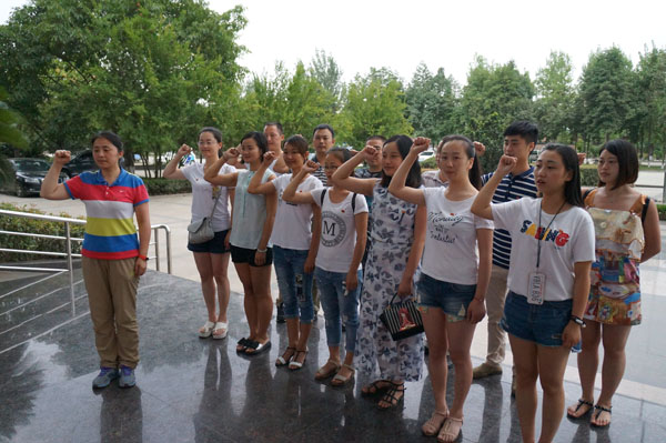 不忘初心,方得始終。在鮮紅的黨旗下,書記帶領大家舉起右手,莊嚴宣誓,重溫入黨誓詞,同時認真回顧每人簽署的《做“合格共產黨員”承諾書》和《黨員黨風廉政承諾書》,胸前閃耀的黨徽也時刻提醒每一名共產黨員牢記信仰和宗旨,堅定信心,在各自的崗位上創先爭優,成為群眾信得過、客戶也點贊的合格共產黨員和合格川開人!