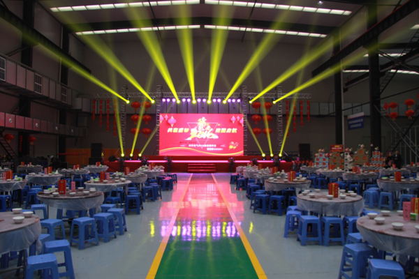 2月4日當天,整個川開工業園都洋溢著紅紅火火的節日氛圍,大紅的燈籠高高掛起,飄揚的彩帶拂起佳節的喜慶,這一切都在指引著大家前往本次團拜會的會場。絢麗的舞臺已經搭好,五彩的燈光準備就緒,100多桌的大團年宴席已經擺開,恭候每一位勤懇的川開人及川開的朋友們在此共同慶祝新春佳節。