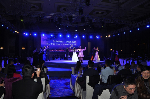 18點(diǎn)38分,一部溫馨感人的川開(kāi)回憶短片拉開(kāi)了本次營(yíng)銷(xiāo)年會(huì)的序幕。在營(yíng)銷(xiāo)中心總監(jiān)岳宏和營(yíng)銷(xiāo)常務(wù)副總監(jiān)李桂英的帶領(lǐng)下,一支由營(yíng)銷(xiāo)中心行業(yè)總監(jiān)和員工組成的華爾茲舞蹈隊(duì)閃亮登場(chǎng),大家身著華麗禮服,伴著悠揚(yáng)的旋律和溫柔的燈光翩翩起舞,引來(lái)了全場(chǎng)的歡呼和尖叫。舞曲結(jié)束后,岳總向到場(chǎng)嘉賓和全體同仁在過(guò)去一年中給予營(yíng)銷(xiāo)中心的支持表示誠(chéng)摯的感謝,同時(shí)倡導(dǎo)大家以更好的狀態(tài)和充足的信心開(kāi)啟2016。