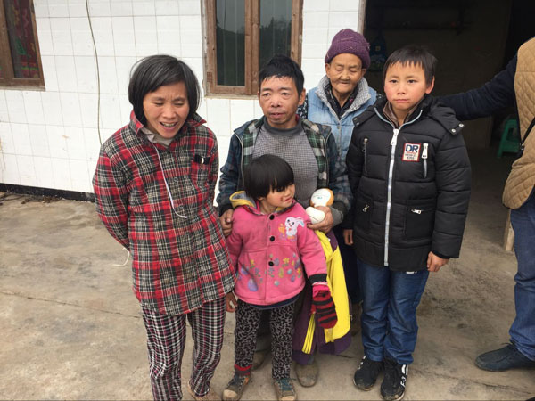 以第三小組負責走訪的6戶家庭為例,其家庭構成大多可以用“畸形”二字來概括。家中基本是父母均有智力障礙,或有殘疾,或是過世,或是因為難以忍受貧困早早撇下孩子離家出走。總之,幸運的家庭只有一種,而不幸的家庭卻有各自的不幸。這些家庭基本沒有固定收入,除了每月很低的貧苦補助外,就靠親戚和好心人接濟。整個家庭的基本溫飽成了最大的問題,對他們來說每一天似乎都是生存大挑戰,眾多的姊妹,衣不蔽體,食不果腹,輟學在家,還有四壁透風、漏雨的家……,這一切都讓我們每一位志愿者覺得觸目驚心。不是親眼所見,或許我永遠都不會相信這世界上真的會有這么貧困潦倒的家庭!我們為他們送上了大米和食用油,還有一些暖冬的衣物,包括我們隨身攜帶的小零食和充饑的方便面,這一切對他們來說,像抓住了些許救命稻草!我們也深切的知道,這一點小小的救濟,又能改變這個殘缺的家庭什么呢?當那些瘦弱的身板兒穿上這些捐獻的棉衣,高興的手舞足蹈,直喊“真暖和”的時候,我們心酸至極!他們無法選擇自己的出生和命運,在這樣的家庭,小小年紀的他們需要承受的是我們成年人都無法想像的!